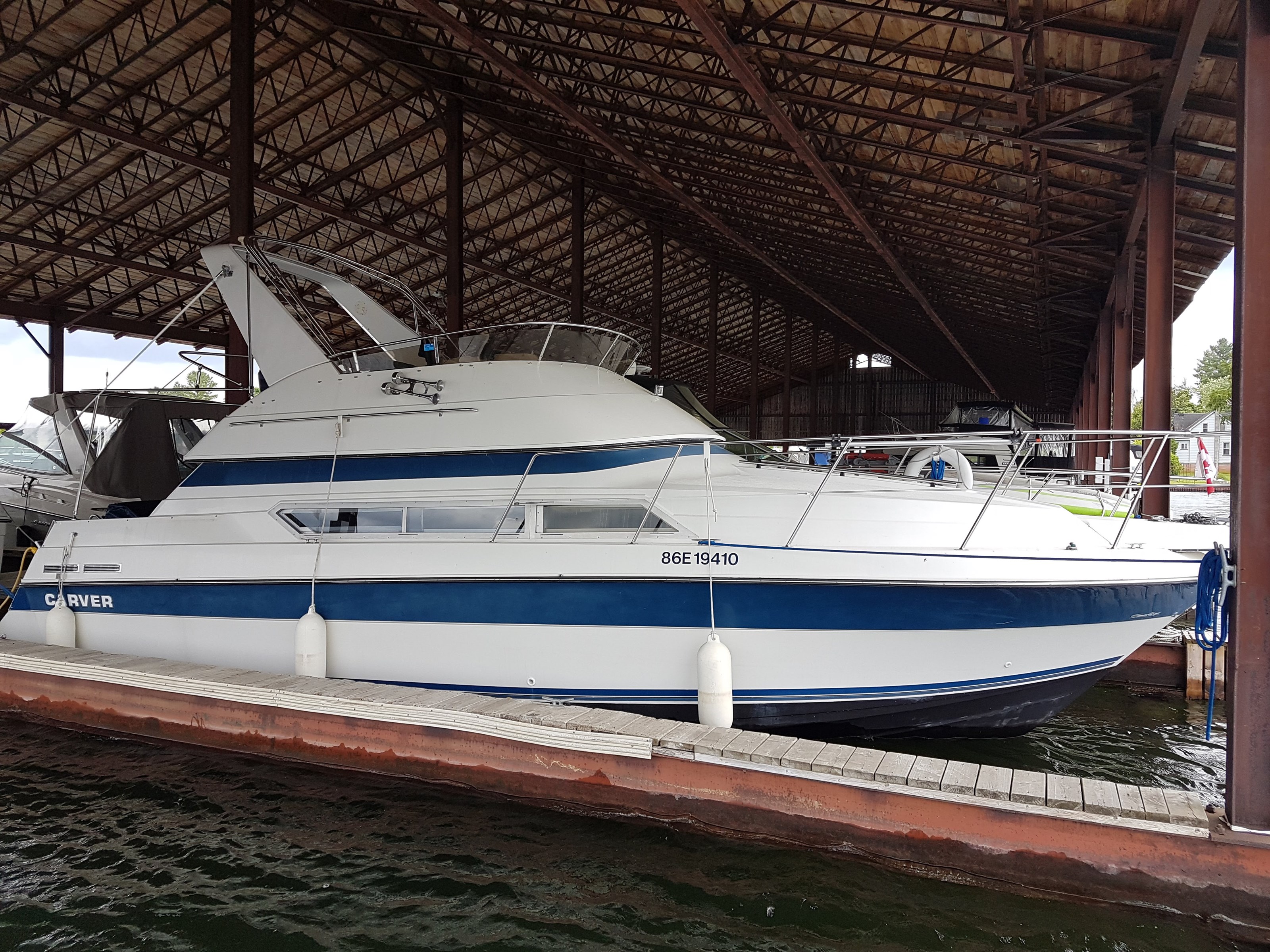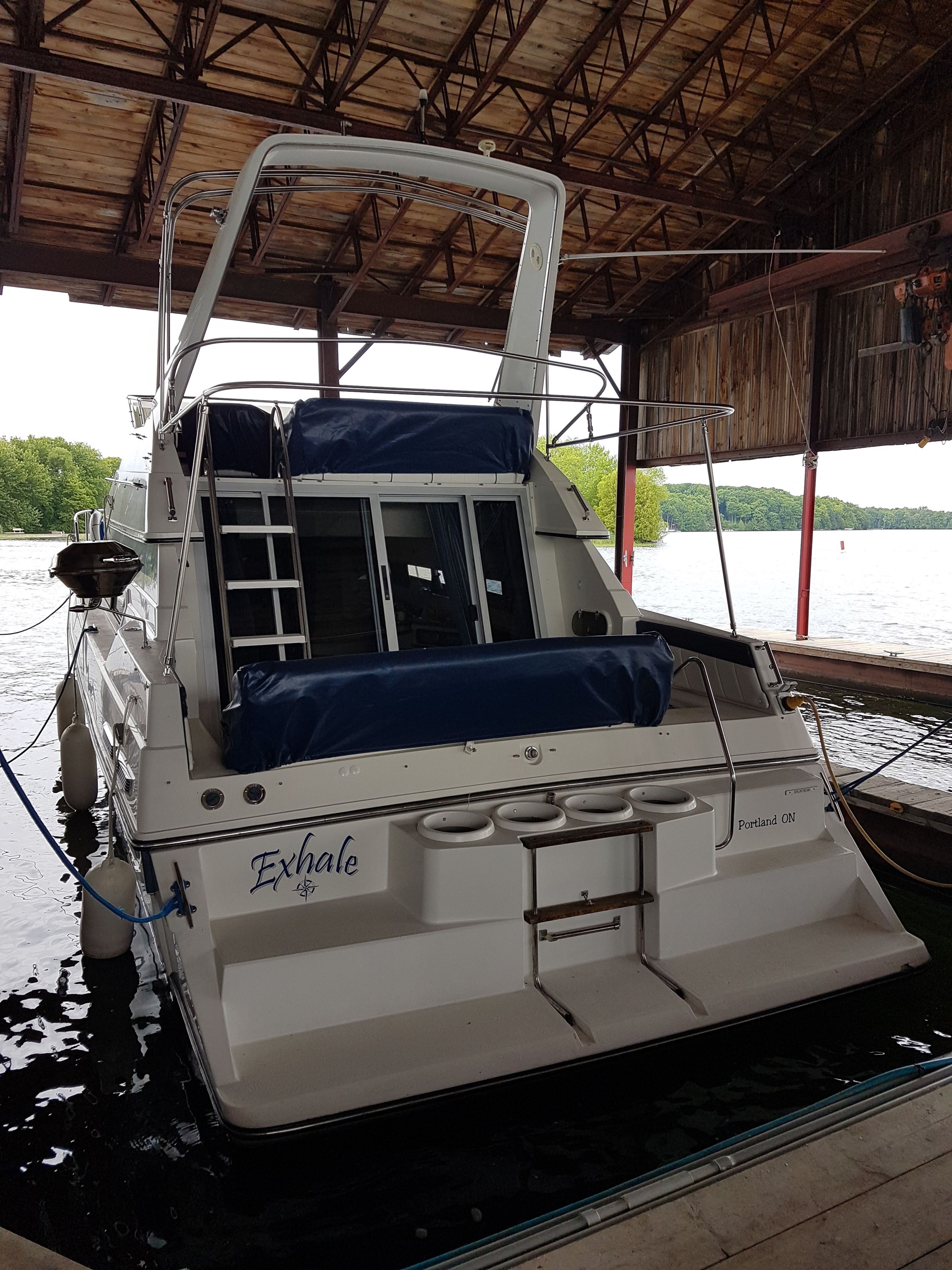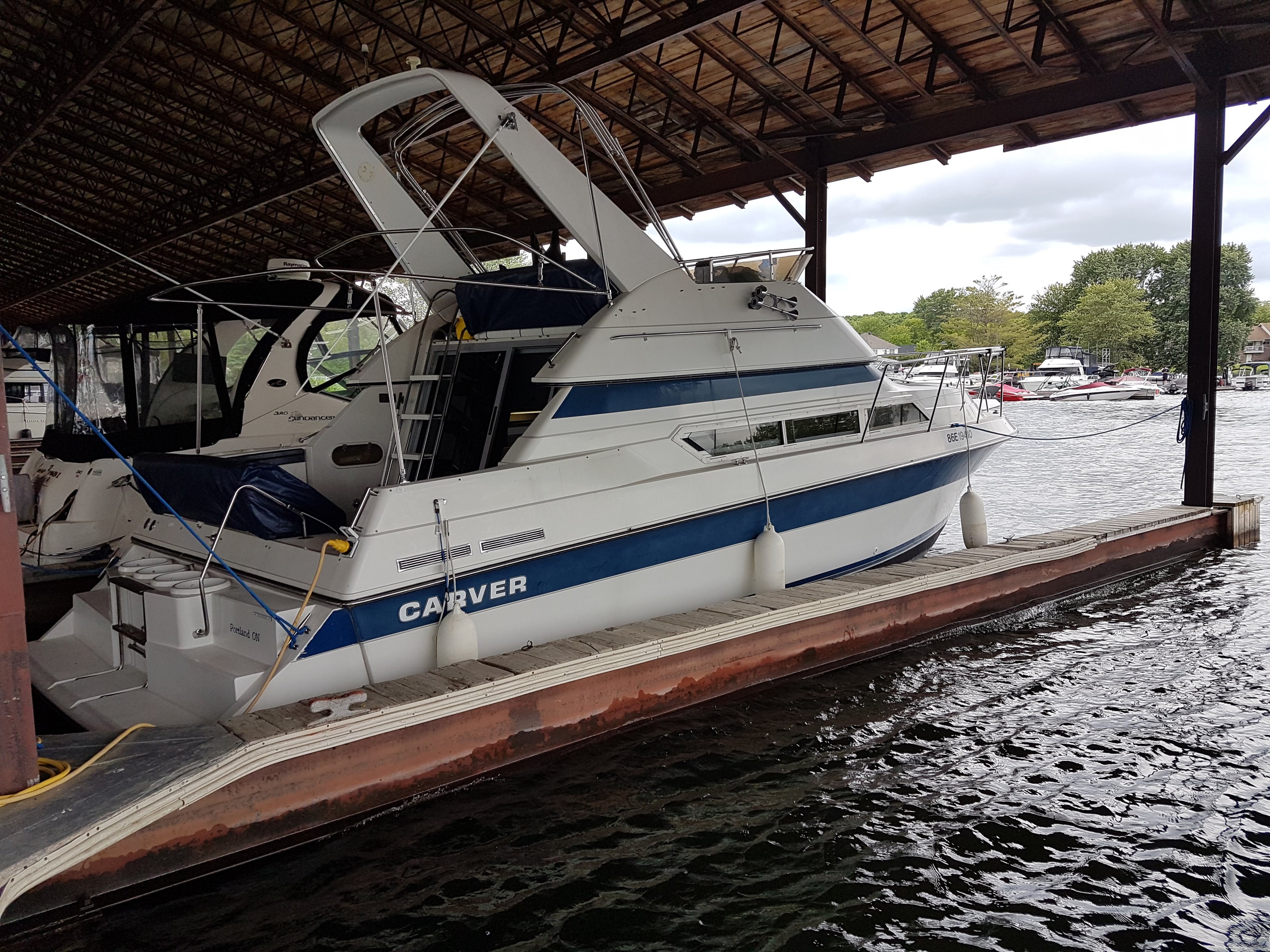 This boat has been maintained and winterized at the same full service marina for the past 11 years where she has been docked in a covered slip. Service records are available from the marina.