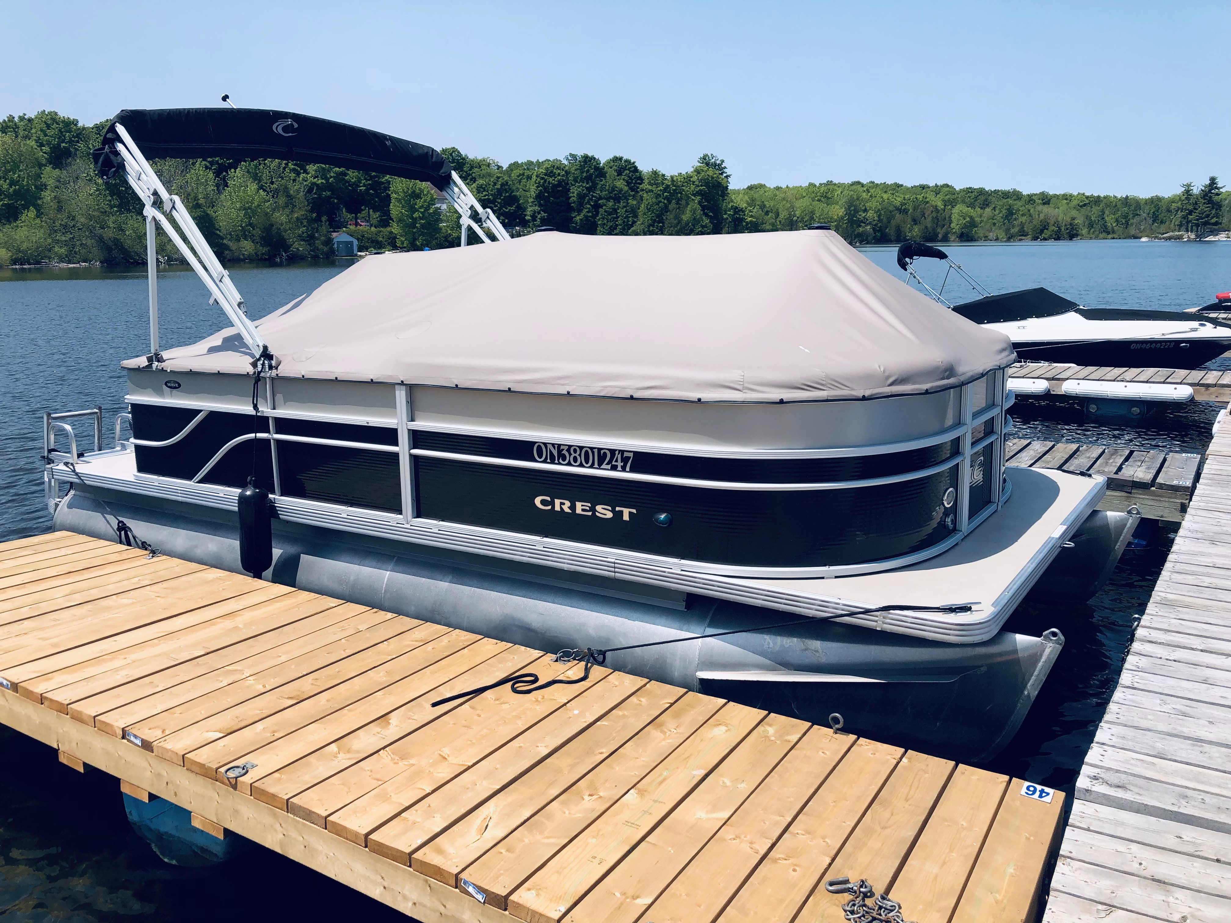 • The Crest Wave 210 is known for its versatile, family-friendly layouts, featuring L-shaped seating. Powered by an Evinrude outboard, it is a reliable, durable option offering a comfortable, stable ride for cruising.