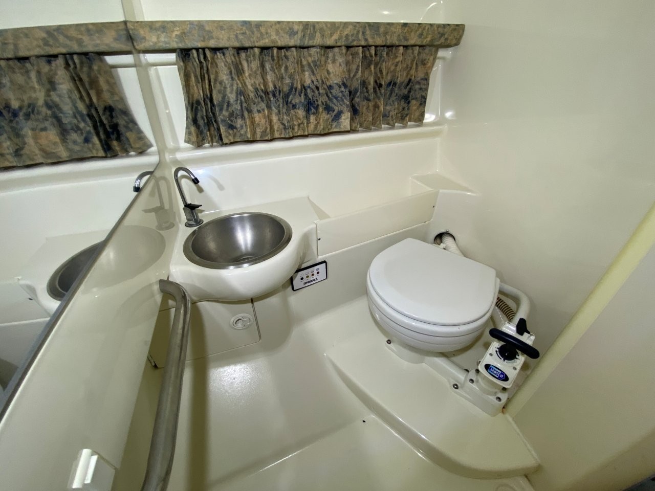 - walk-through transom to large U-shaped cockpit seating area with removable cockpit table