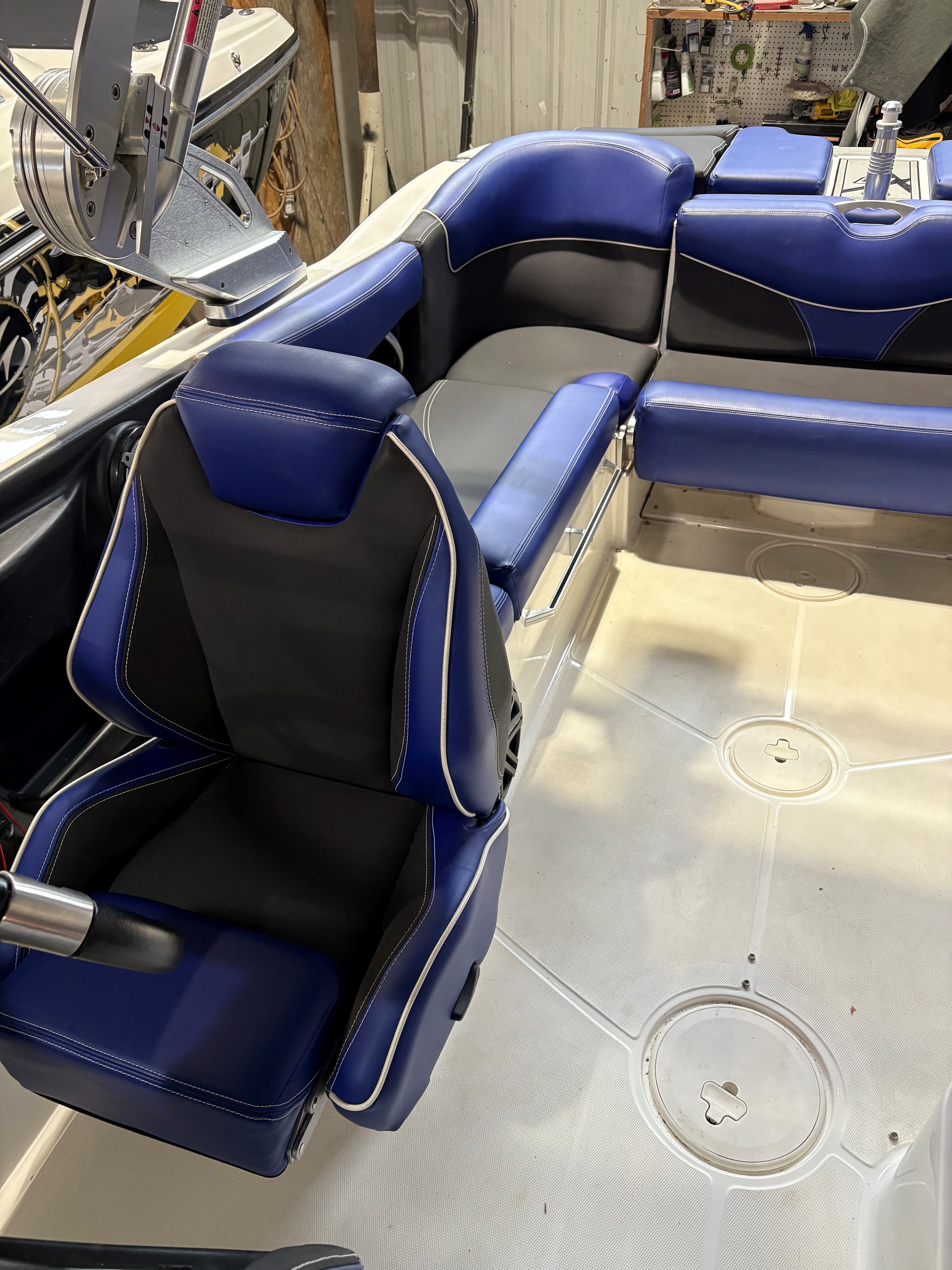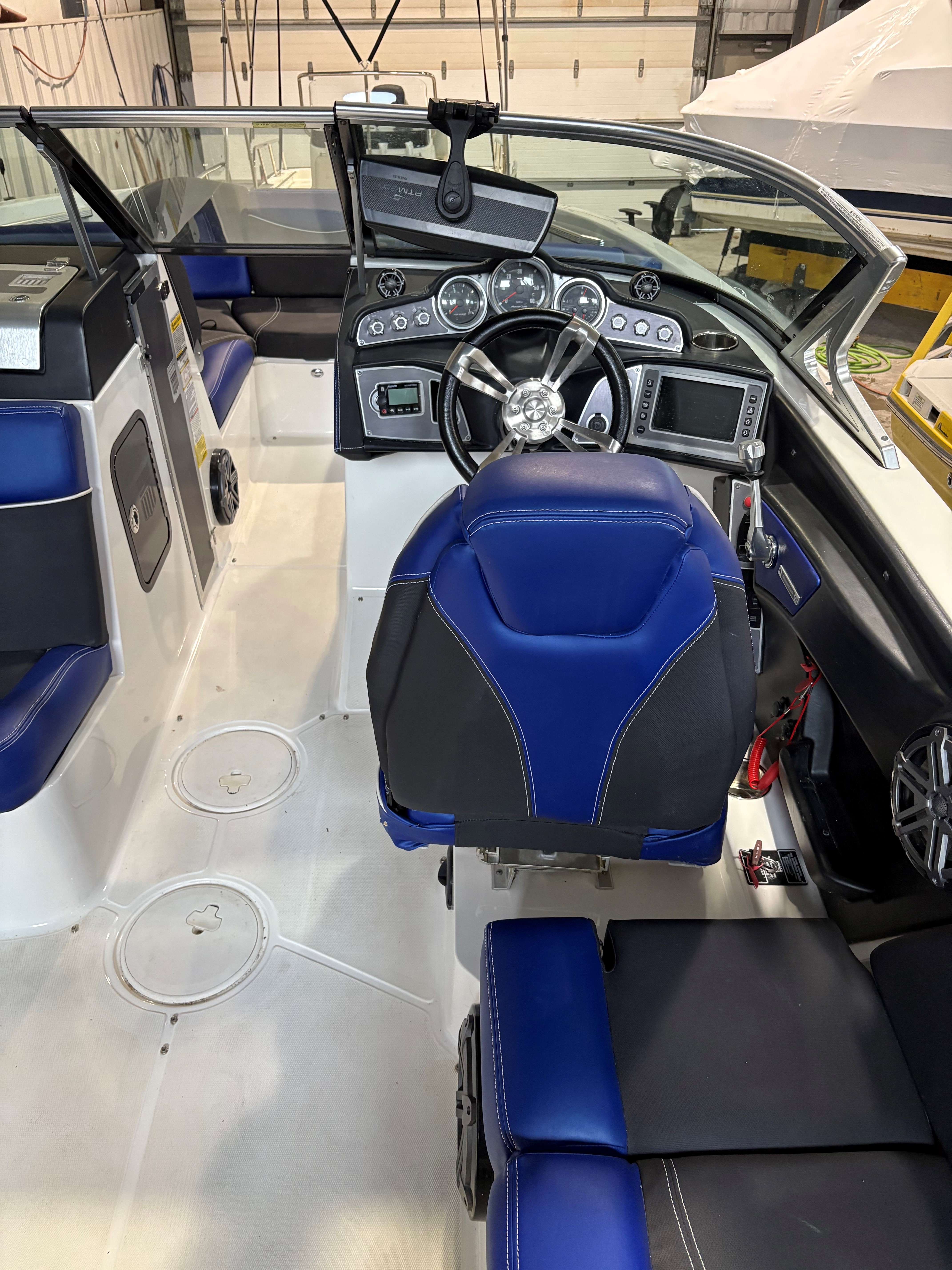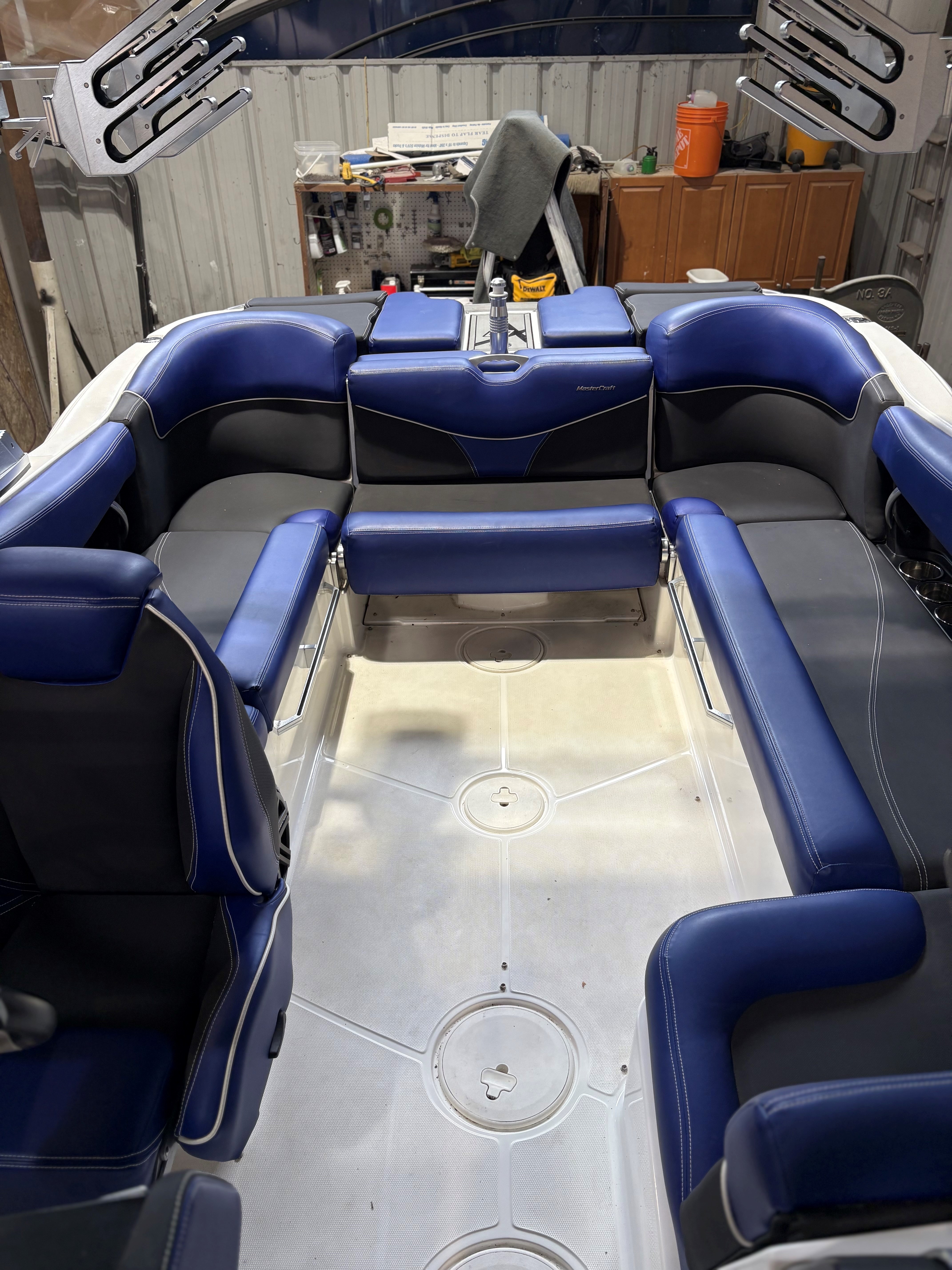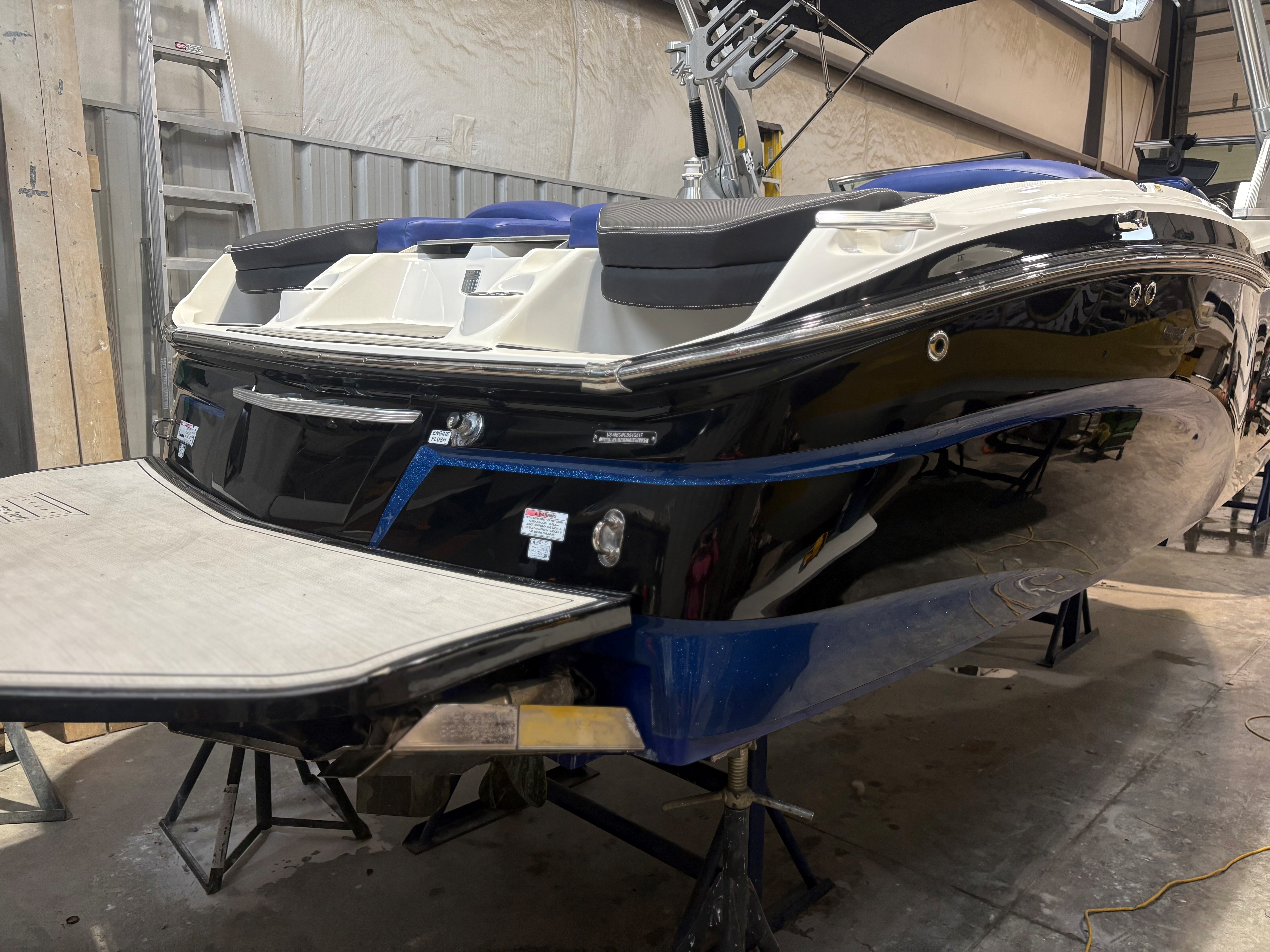 Design: Deep hull for smooth rides, pickle fork bow, fiberglass swim platform.