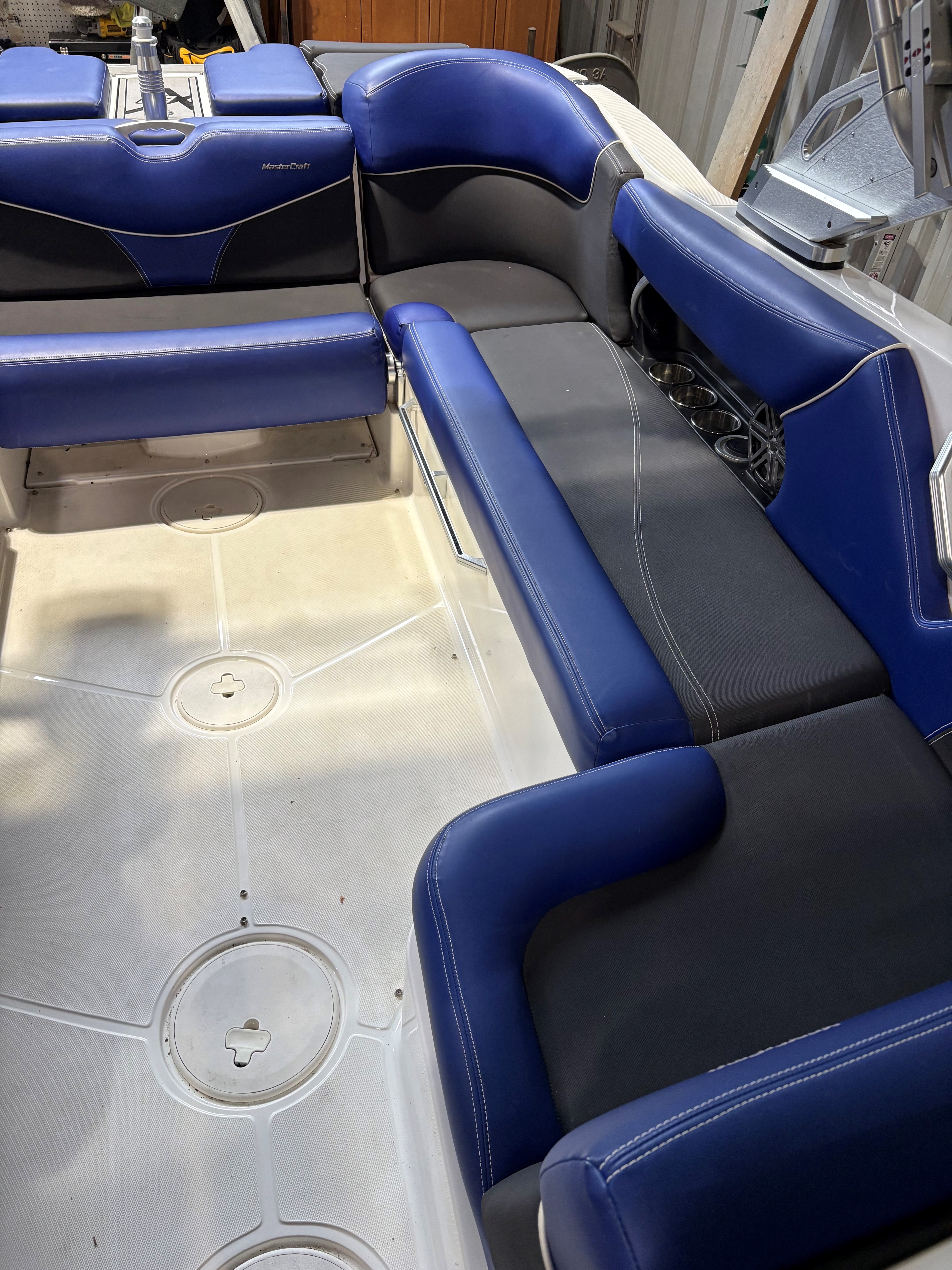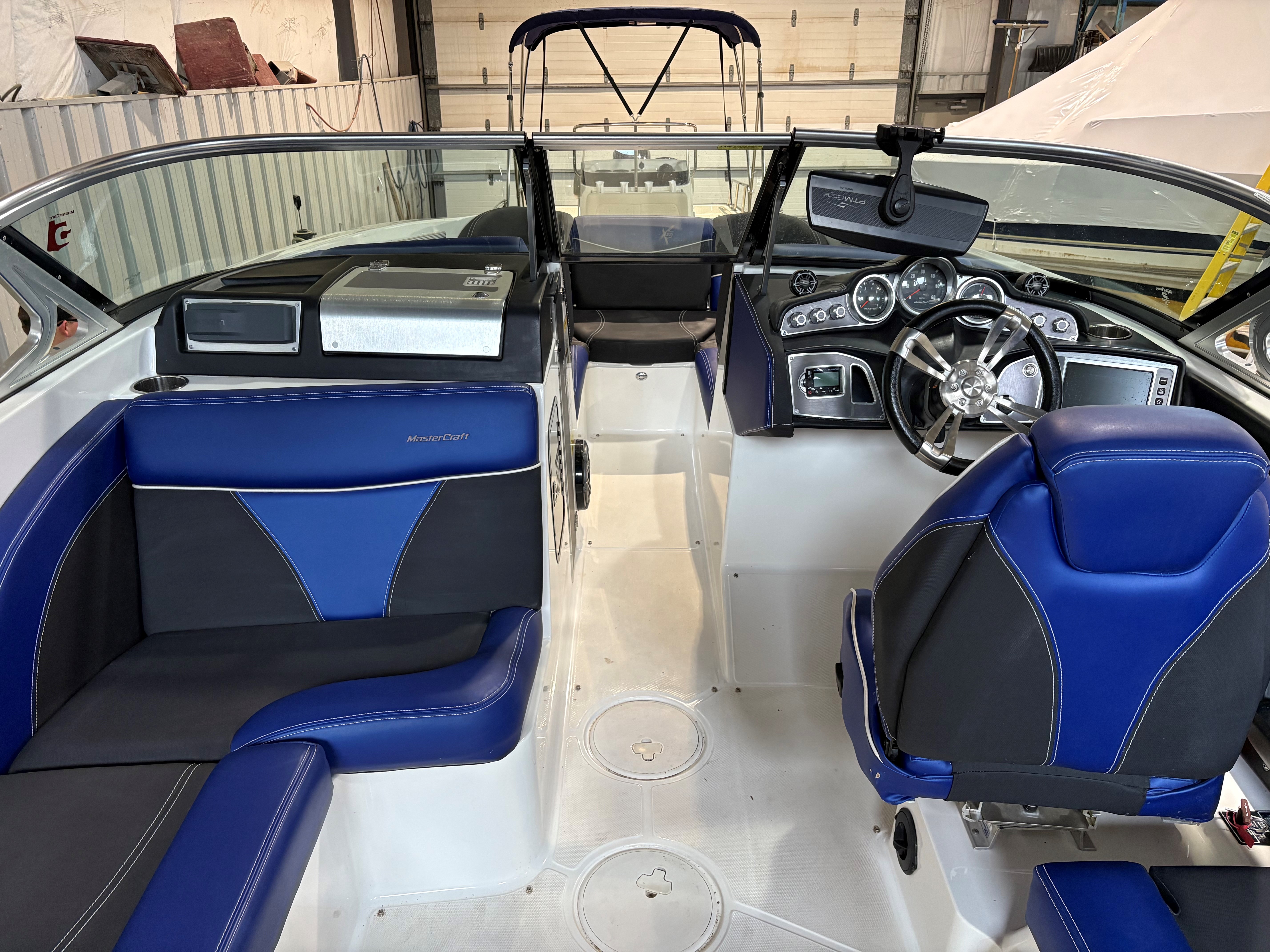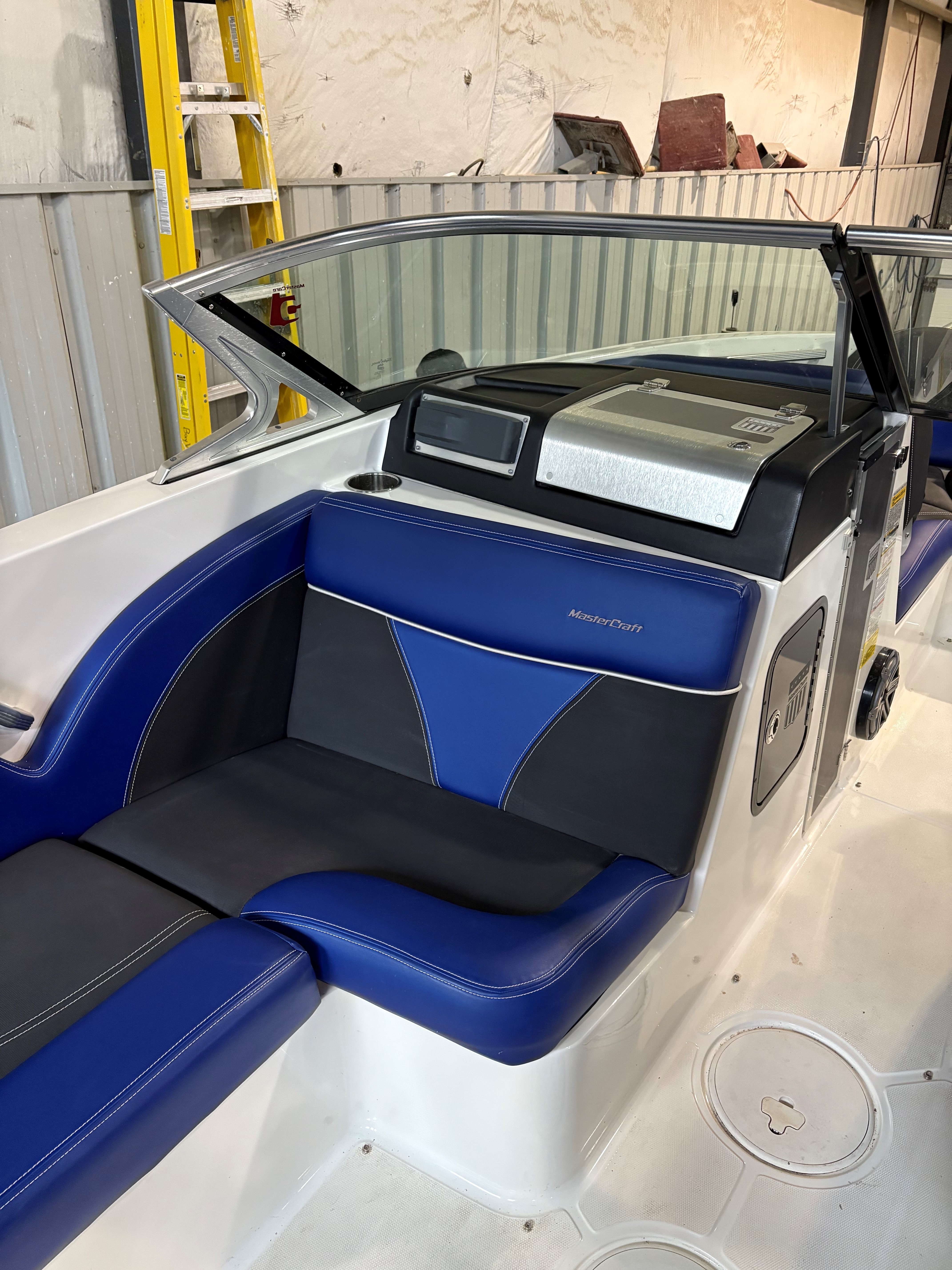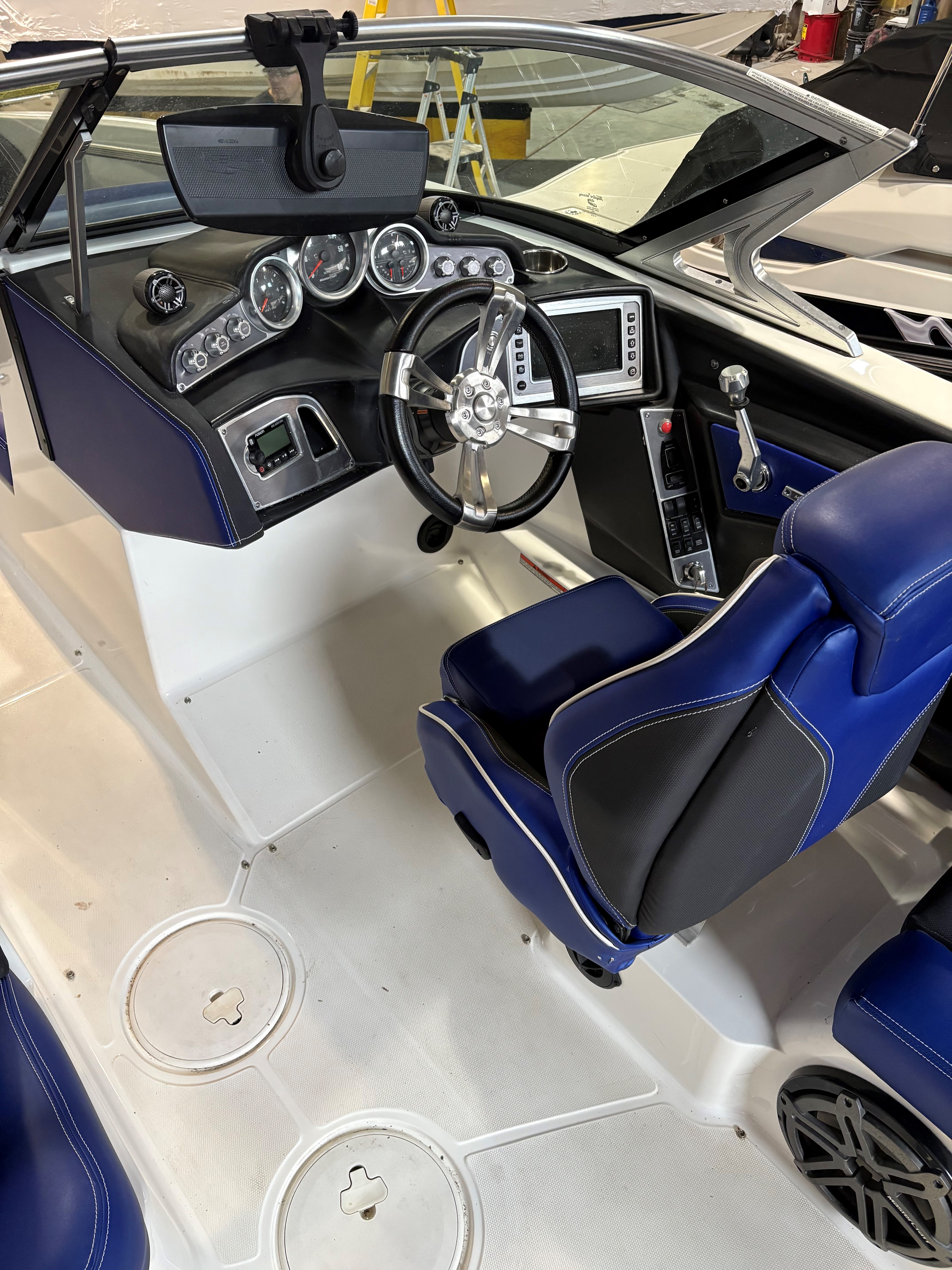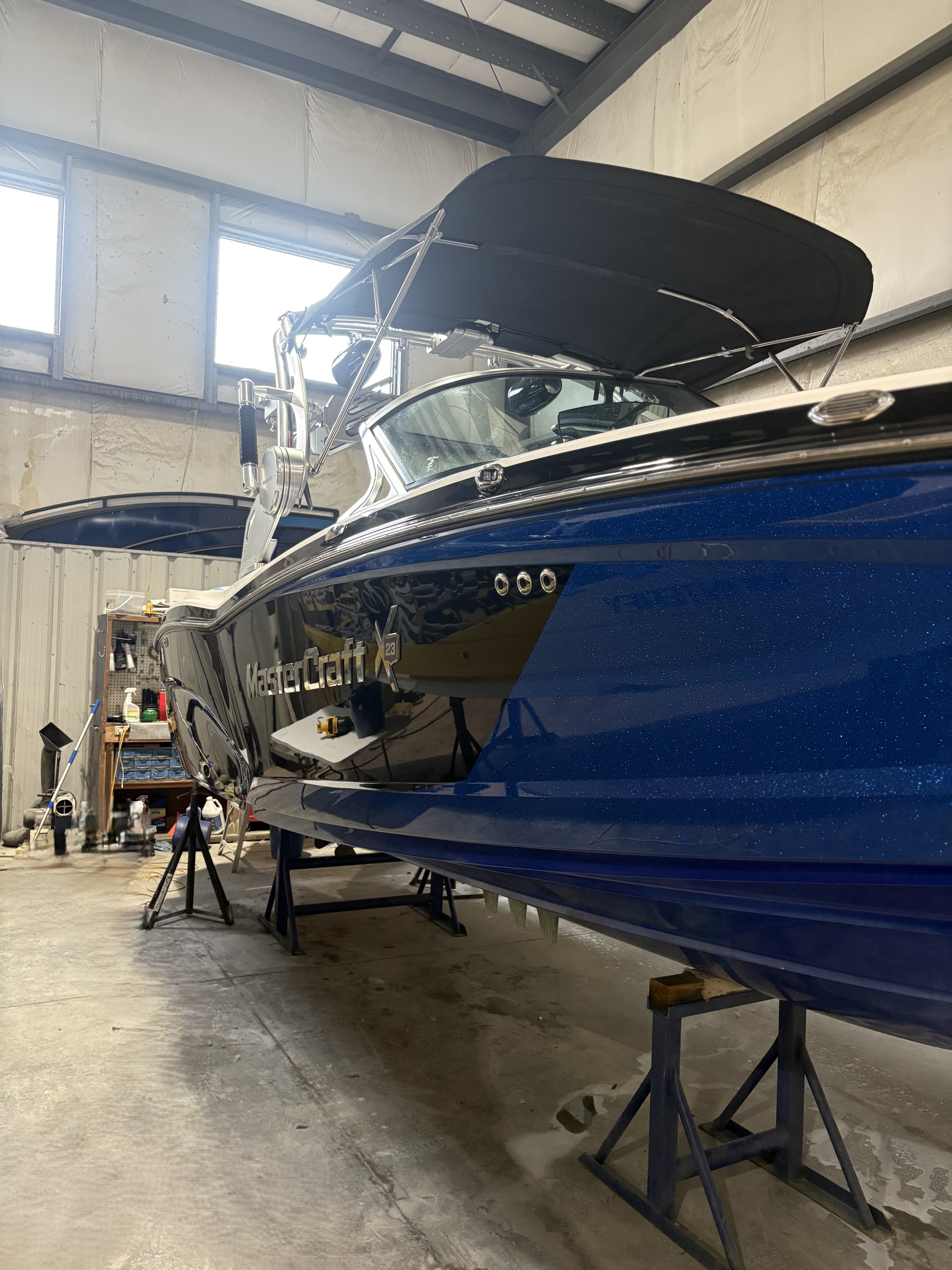 Design: Deep hull for smooth rides, pickle fork bow, fiberglass swim platform.