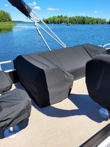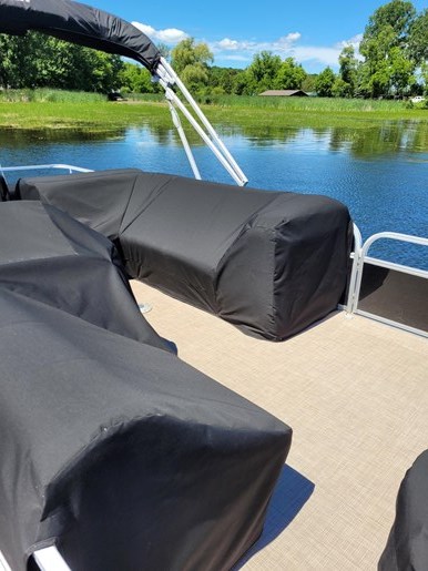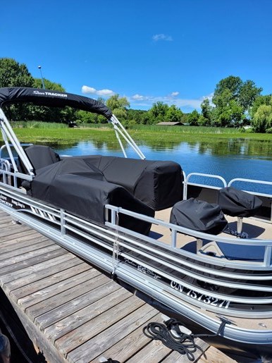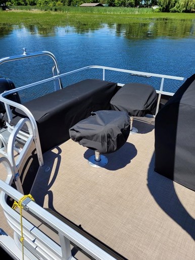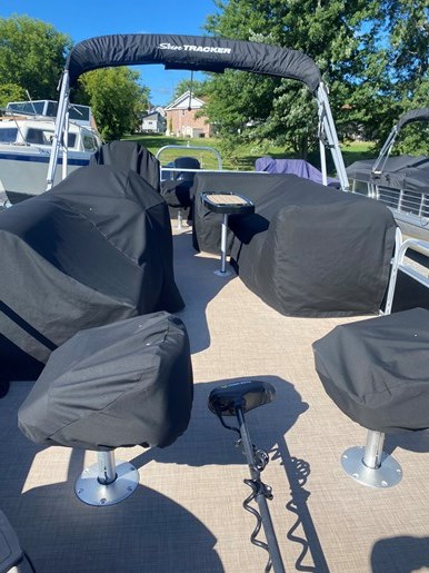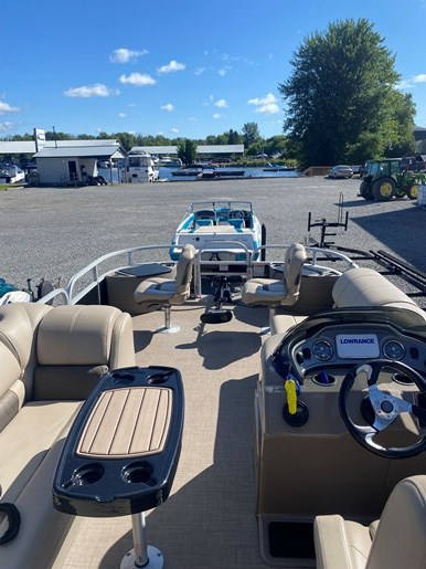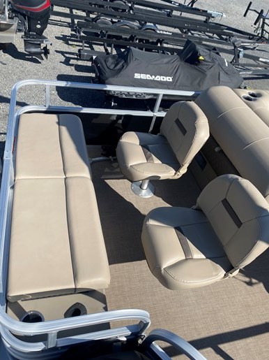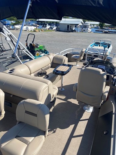 - Anglers will never want to leave this fishing pontoon boat's deck. And with fore and aft fishing decks featuring 32 gal. of capacity between 2 livewells, 4 removable and foldable fishing chairs, and a 10' QuickLift® bimini top to stay cool under, there's no reason to leave! But if you have to, the lockable rod compartment lets you rest easy until your next fishing trip.