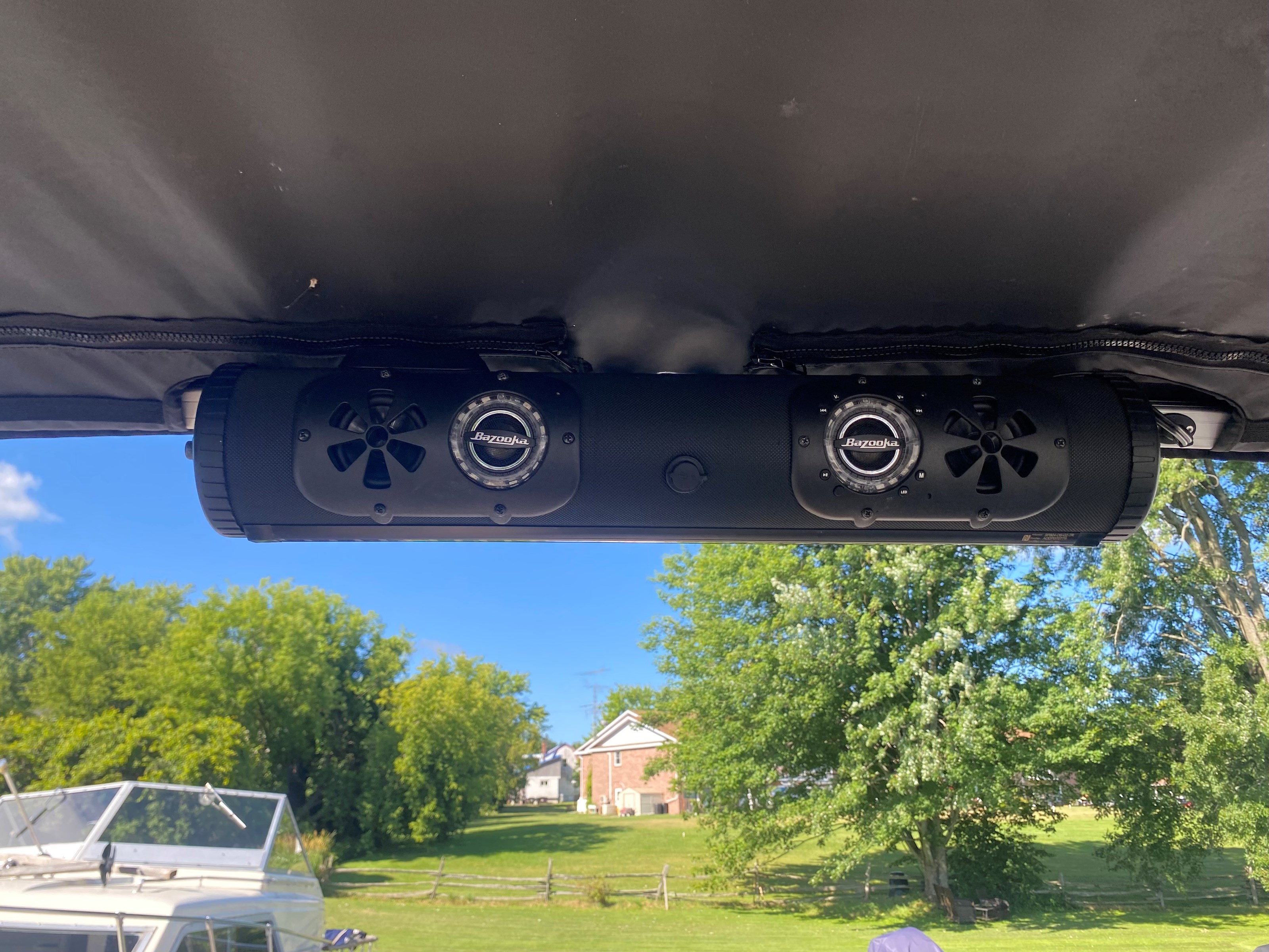 - The large mid-deck couch and L-shaped lounge, as well as the aft seats, all feature the STOW MORE™ system. This storage solution allow you to pack fishing gear, snacks, safety equipment, and more under the seat cushions and behind the seat backs. If anyone wants to take a dip in the water, they can simply open 1 of the 3 inward-swinging doors and dive in! The aft reboarding platform has a 4-rung telescoping ladder for easy reentry.